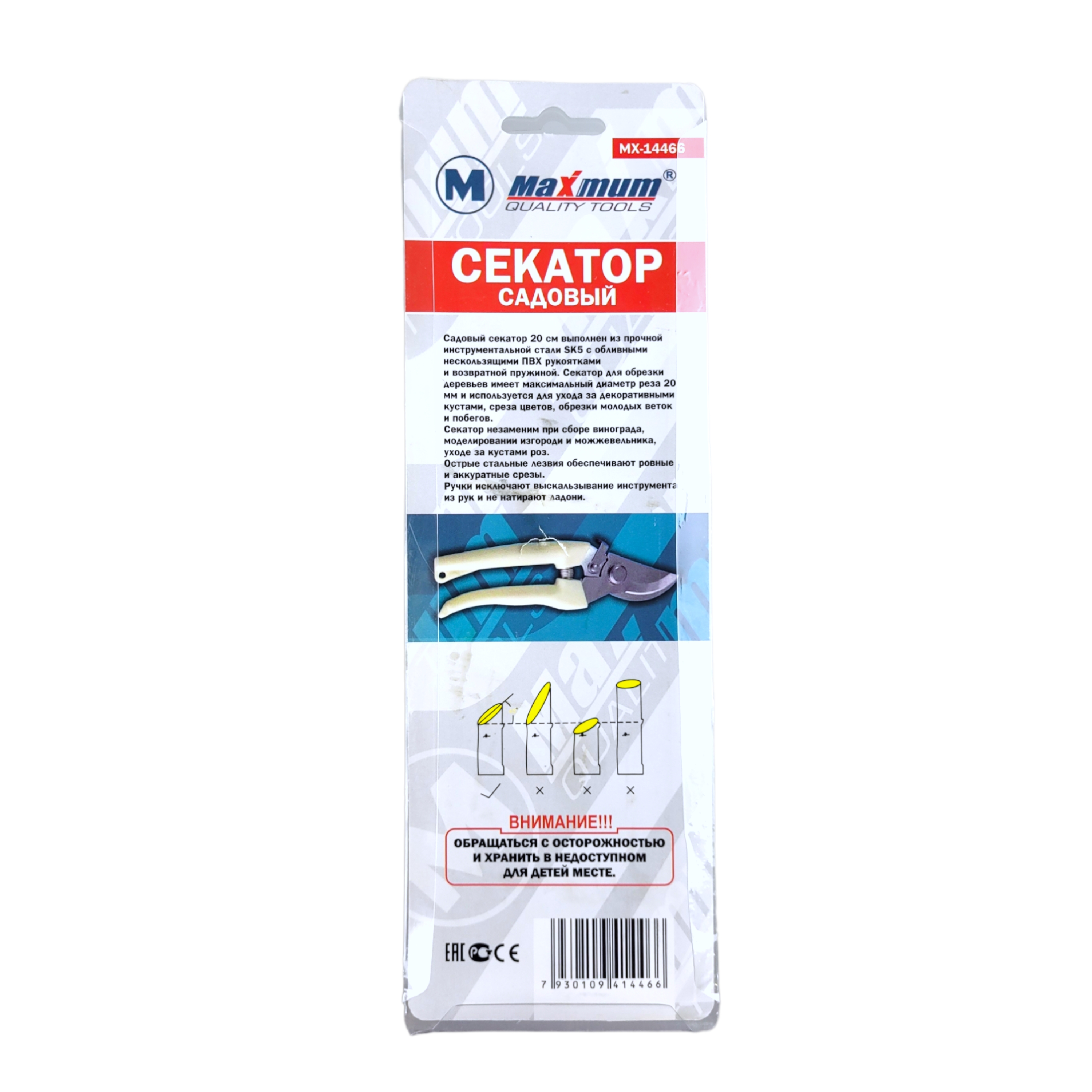 Секатор с пластиковыми рукоятками – это садовые ножницы с лезвиями, выполненными из высокопрочной инструментальной стали SK5. Чтобы эта несложная конструкция могла справляться с толстыми ветками верхнее лезвие (оно является рабочим) качественно заточено и отшлифовано. Инструмент позволяет сочетать длительный рабочий ресурс с хорошим качеством резания. Общая длина 175 мм, длина лезвия 45 мм.
