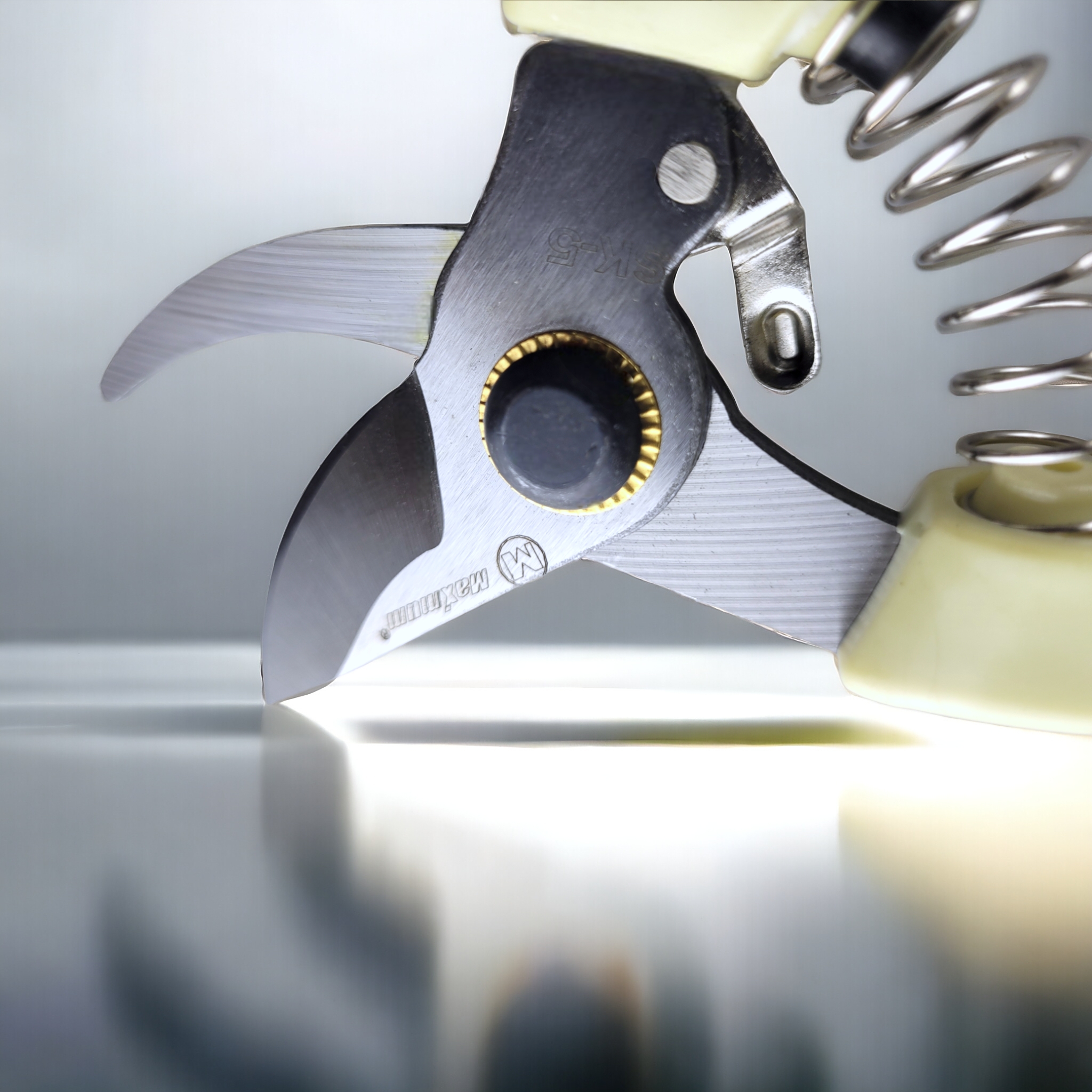 Пластиковые ручки не скользят в руках и надежно защищают инструмент. Важными частями ножниц является фиксатор и демпфер-пружина. Первый позволяет безопасно хранить закрытый секатор, а пружина позволяет избежать травм при работе с ветками большой толщины до 20 мм.
