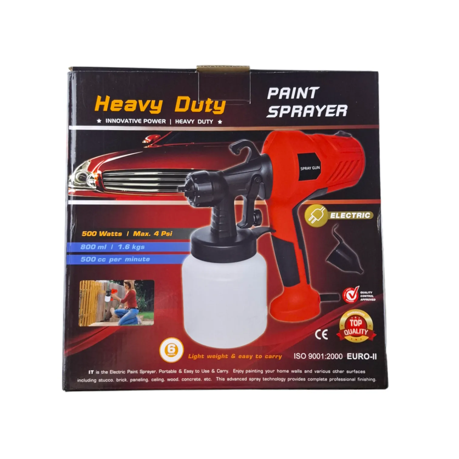 Электрический краскопульт для латексных и масляных красок использует новую технологию с регулируемой шириной распыления. Медное сопло увеличенного диаметра создано для большей производительности. Регулировка расхода позволяет использовать материалы различной вязкости (краски на разной основе, лаки и т.п.) и выполнять разнообразные работы (окраска, покрытие, опрыскивание). Регулировка формы сопла предназначена для горизонтальной и вертикальной окраски, а также для труднодоступных поверхностей. Расходная емкость объемом 800 мл(1,2кг) позволяет длительно работать на одной заправке и не нагружает руки излишним весом. Простая очистка после использования. Стакан для проверки вязкости в комплекте. Потребляемая мощность 550 Вт. Скорость двигателя 32 000 об / мин. Краскопульт дополнен удобной двухкомпонентной рукояткой.