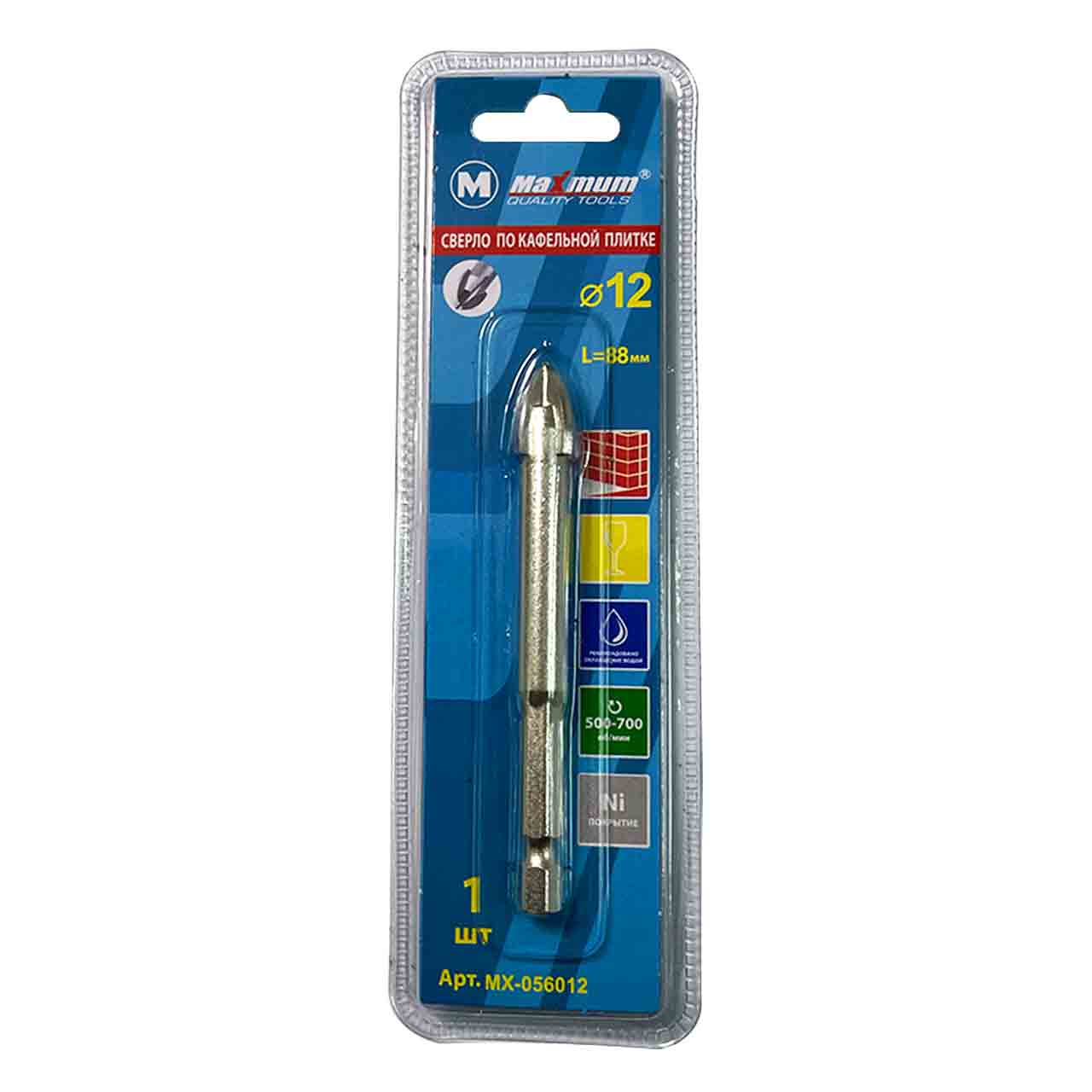 Сверло 12 мм+ от Maximum применяется для сверления отверстий в керамической плитке 1-4 класса твёрдости, керамограните и стекле. Твердосплавная напайка квадро изготовлена из карбид-вольфрамового сплава с никелевым покрытием.