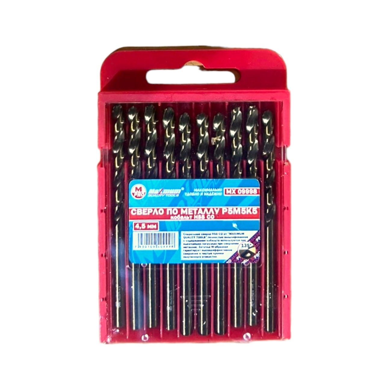 Легированное кобальтом сверло 4,5 мм от "MAXIMUM QUALITY TOOLS" имеет более высокую термоемкость и износостойкость, благодаря чему прекрасно переносит высокотемпературные нагрузки и сохраняют металлорежущие свойства.